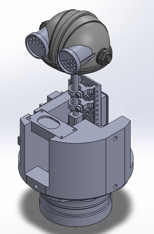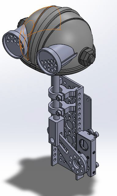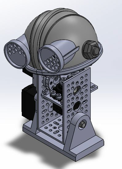 In attempts to make repairing and replacing broken parts as easy as possible, the assembly was designed with mostly off the shelf components, with the exception of a few 3D-printed parts and the themed parts, such as the head and eyes. This will allow the students to maintain the system without the hassle and price of remaking custom parts.