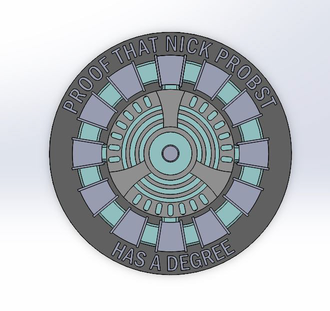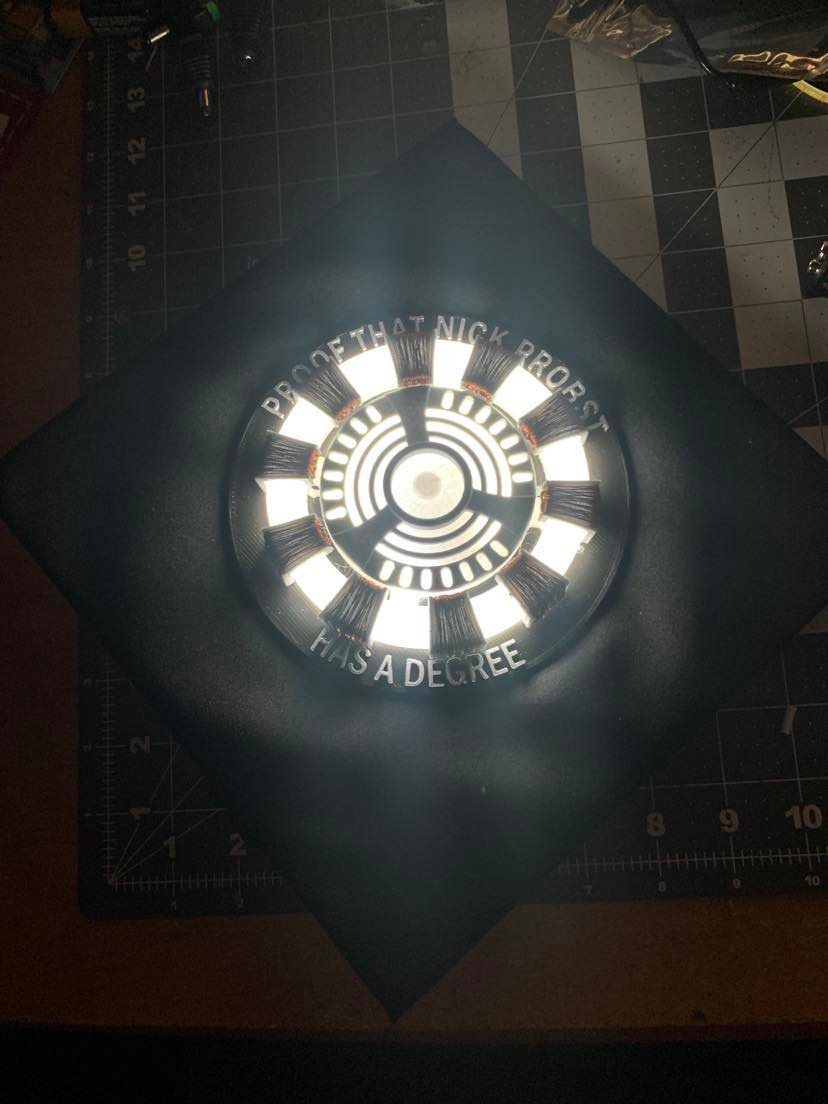 For my college graduation, I decided to decorate my cap by replicating the original Arc Rector from Iron Man 1. Like many of my other projects, I 3D modeled the assembly in SolidWorks, making sure to have provisions for a LED strip and battery hidden in the cap.